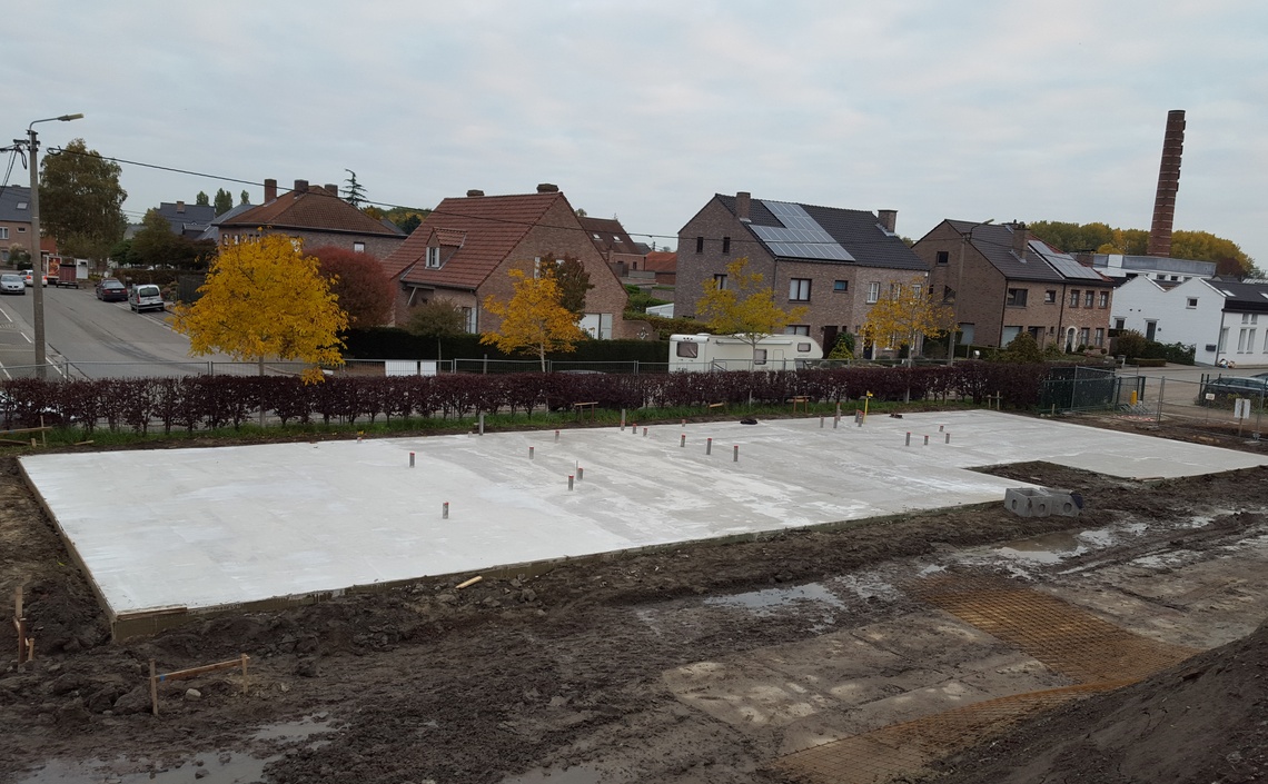 Leveren en plaatsen van een algemene gewapende funderingsplaat met alle rioleringswerken in en rond het gebouw.