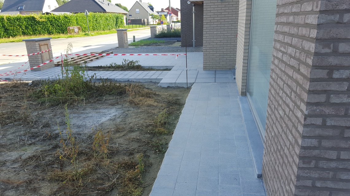 Leveren en plaatsen van verhardingen voor terras en paden in natuursteentegels.